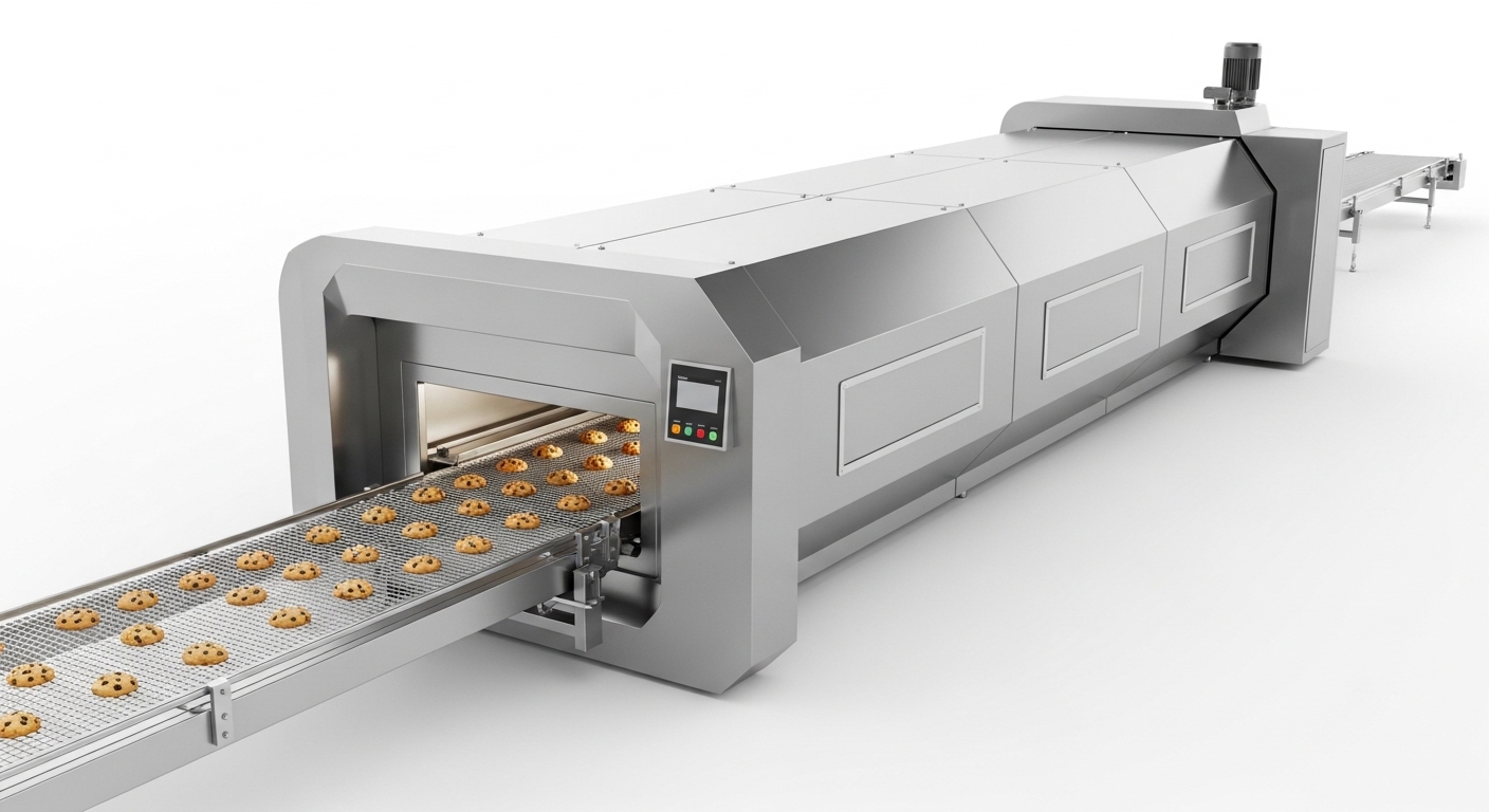 Continuous or batch ovens for baking large volumes of bread, cookies, and biscuits. Tunnel ovens provide consistent results with high throughput.